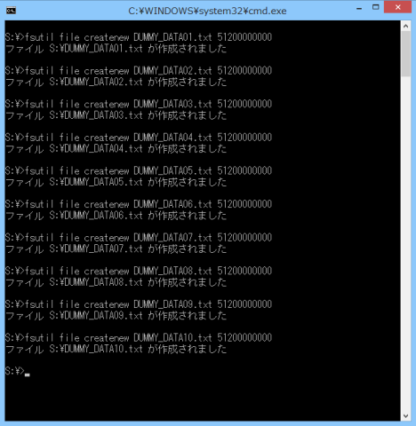 ダミーファイルはWindows標準で用意されているfsutilコマンドで作成しました。