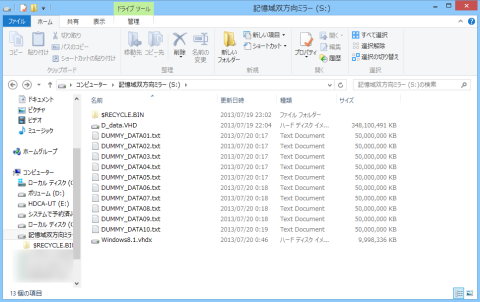 元のDドライブの内容を記録したVHDファイル約350GBと検証用Windows8.1PreviewのVHDXファイル(約10GB)を書き込みます。