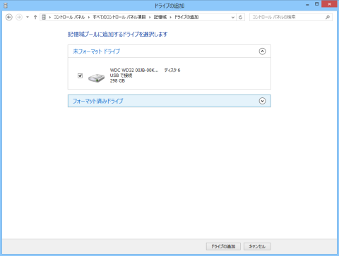 USB3.0接続でIDEのHDD WD3200JB ③を記憶域プールへ追加します。