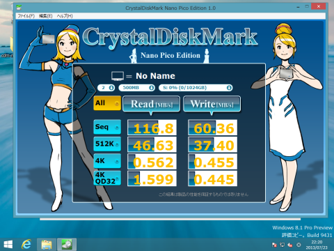 やはり、それなりにパフォーマンス劣化が目立ちますね。速度を求めなければいいとは思いますが。。。ランダムな性能はそこそこ出ているので、体感ではわからないかもしれません。