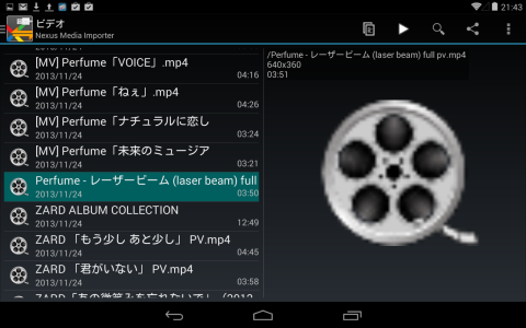 このNexus Media Importerを使って、SDカード・USBメモリから読み込みをします。