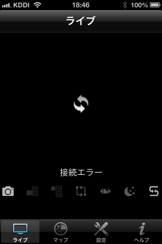 早速カメラに接続してモニタリングして見ましたが、接続エラーで繋がりませんでした。
