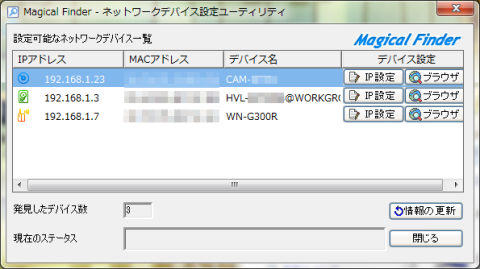 問題点を確認するため、Magical FinderをPCにインストールして接続状態を確認しました。