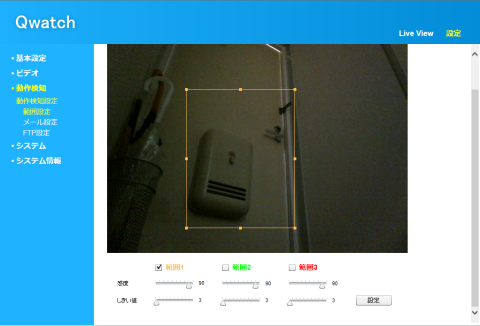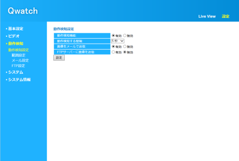 Qwatchには、動作を検知してメールやFTPサーバへ画像を転送する機能があります。