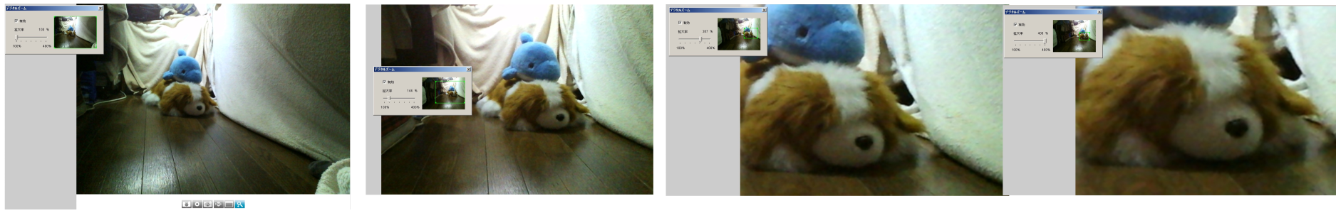 必然的に拡大をすると画像が荒くなりますが、自由にズームが調整出来るので用途に応じて設定をすればよいと思います。(画像をご参照下さい。)