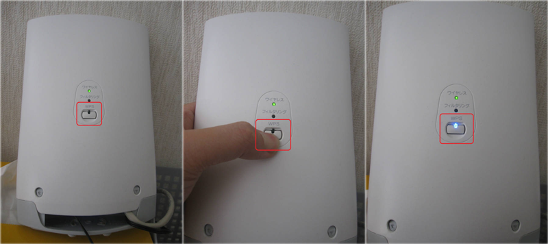 指示通り3秒ほど押下しつづけると、WPSランプが点滅します。