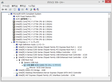 「USB 接続 SCSI(UAS)マスストレージ デバイス」で認識しました。