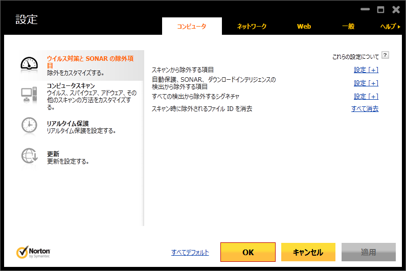 そんなわけでNorton Internet Security2012以前から更新する場合は、インストール後に設定を全て確認することをお勧めします。