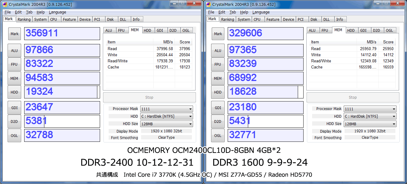 【3770K+Z77によるDDR3-2400ベンチ取得】