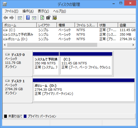 元々、メインのWindows 7環境で使おうと思ったのですが、USB-SATA変換機が大容量ディスクに対応していないらしく3TBと認識できませんでした。