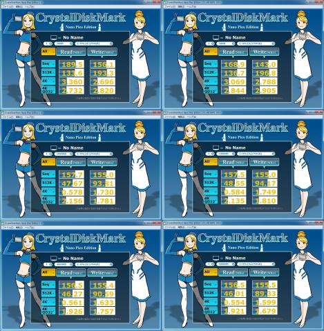 シーケンシャルで150MB/s付近というのは安定していますね。