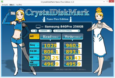 これは、ランダムデータでの計測です。さすが、840PROでのRAID-0といったところでしょうか。
