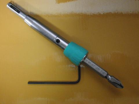下穴を開け終わったら、上のドリル部分を外してネジを取り付けるといった流れです