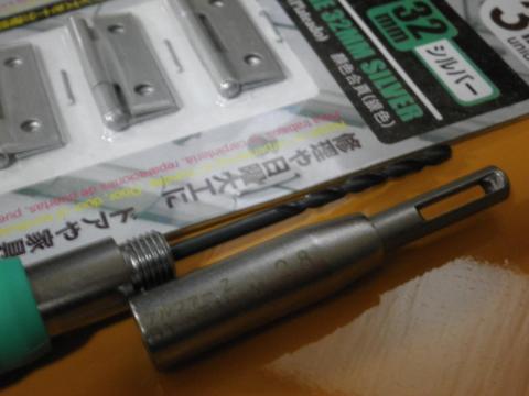 なしでやると結構、曲がるんですよね、錐で下穴あけて下穴ドリルで開けるという