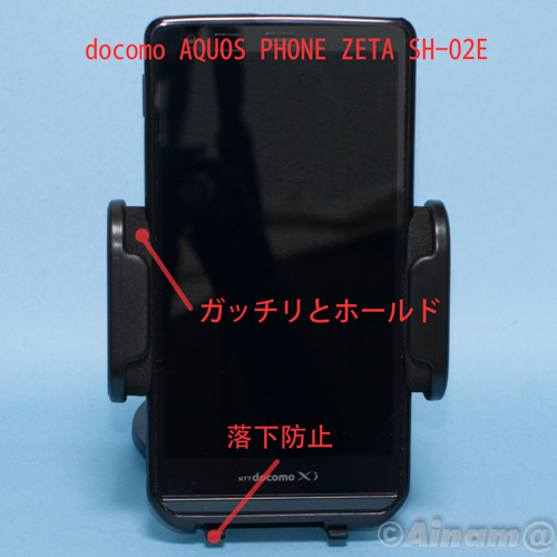 では、docomo AQUOS PHONE ZETA SH-02E を固定してみます。