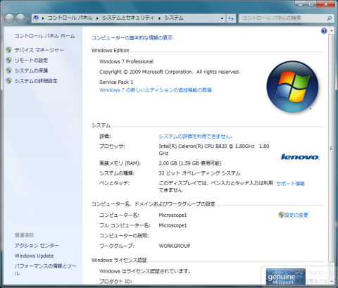 古い画像装置とそれ用のキャプチャソフトを使うために、Windows 7 Professionalの32ビット(XPモードで使えることを確認済み)に限定されているし、現状一番低いスペックでも問題がないから選んだ。本当はオークションで中古の何かを買ったほうがいいけど。