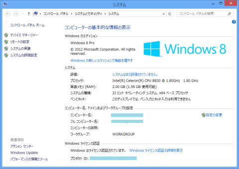 Windows 8モードのシステム情報
