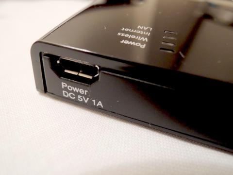 反対側には、給電用のmicroUSBコネクタがあり、ACアダプタまたは、USBケーブルでPCに接続することができます。