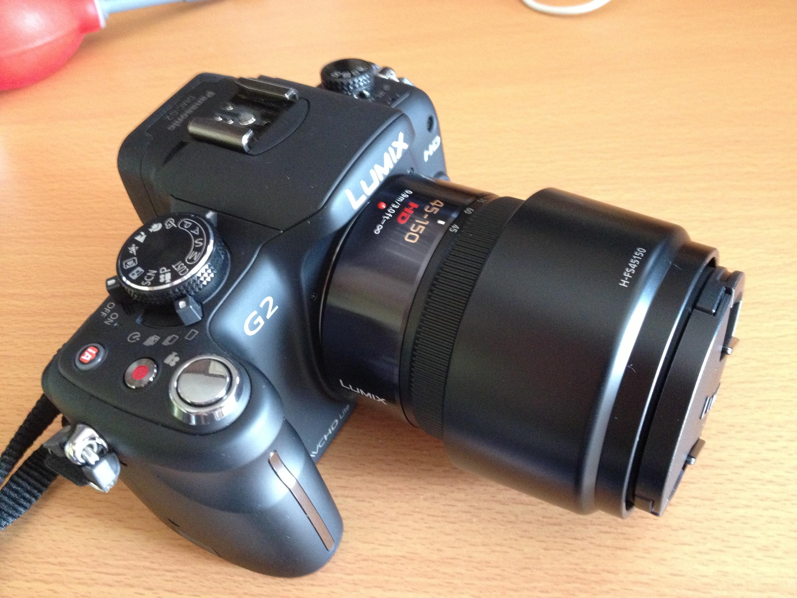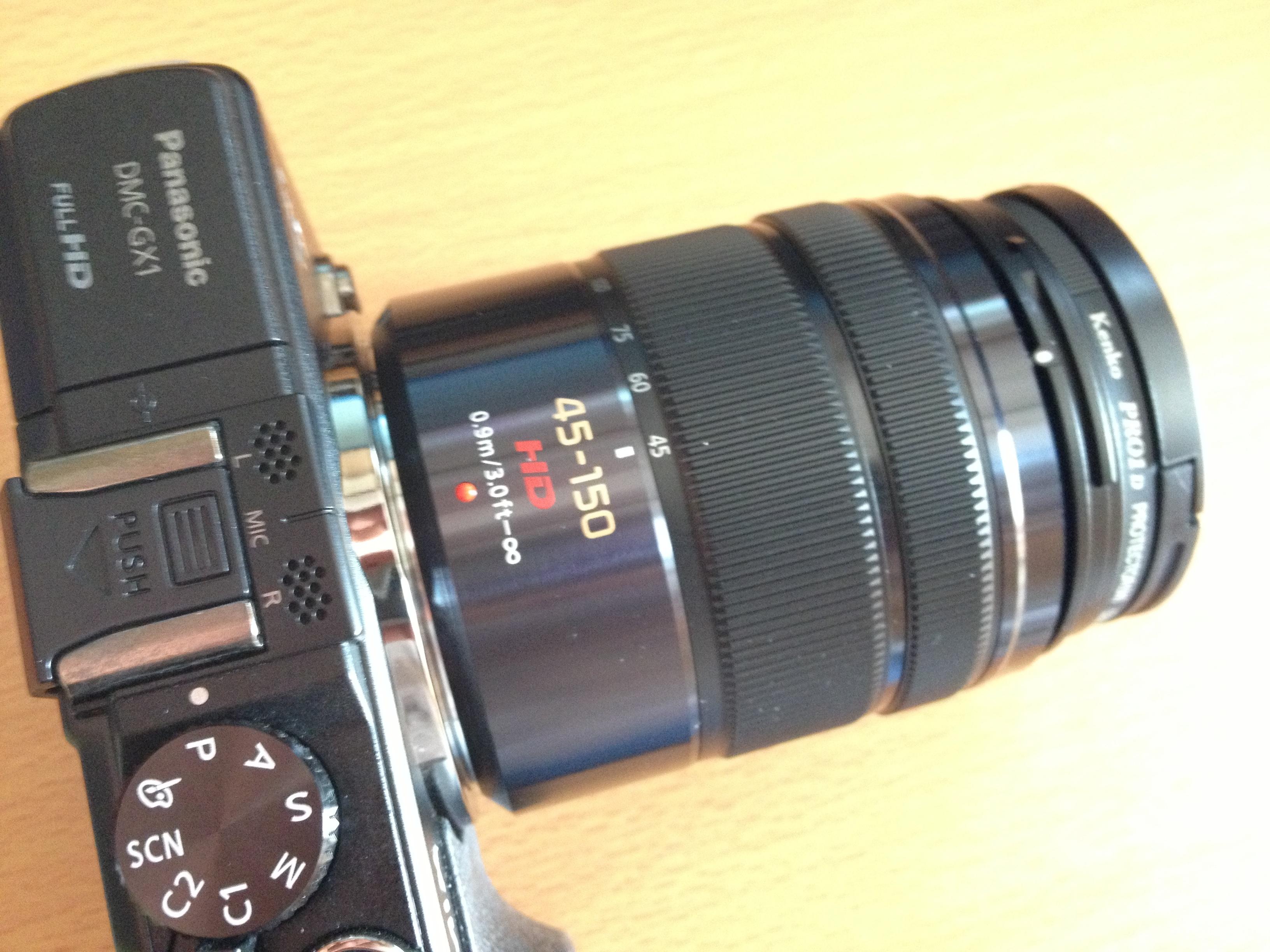 Panasonic LUMIX DMC-G2 DMC GX1に望遠ズームレンズ45-150mmを付けます。