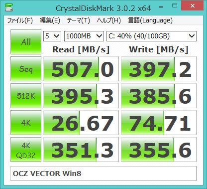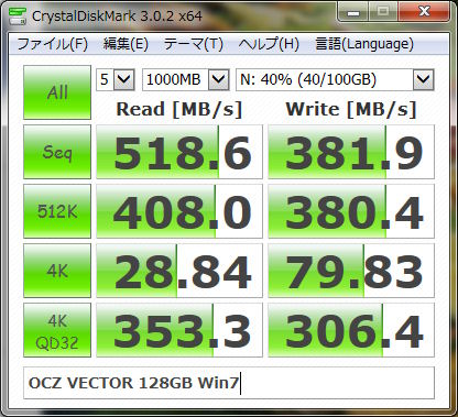 ベンチマークの結果です、(5ヶ月ほど使用した状態です。)