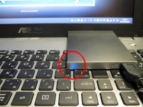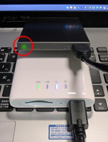 こちらは USB 2.0対応のポートですのでアクセスランプは黄緑色に点灯しています。