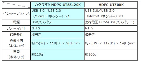 HDPC-UT500Kとの比較表を作ってみました。