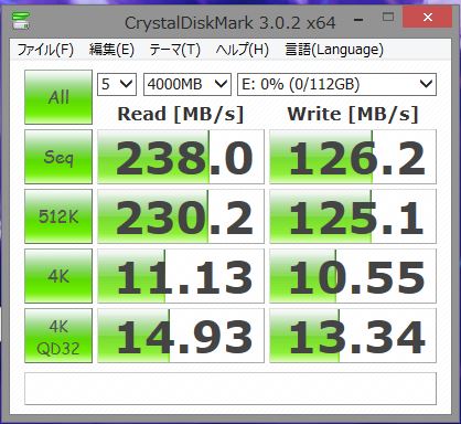 更新後、ベンチマークを比較をしてみました。↑は今回USB3.0で接続していたものです。
