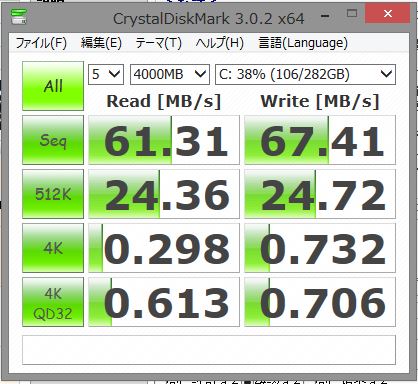 「VAIO C」の内臓HDDでのベンチマークの結果です。
