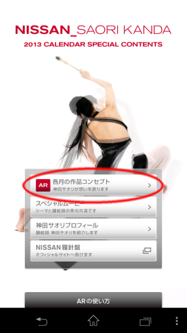 特に一番上の「AR 各月の作品コンセプト」が表紙を含め来年の12月までの写真にカメラをかざすことにより、「神田サオリ」さん本人によるペインティング作品の解説が流れます。
