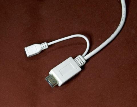 変換ケーブルはいくつかタイプがあるようですが、本品は HDMI側に電源供給用の端子が付いており、接続中は ACアダプタなどから給電しながらでないと映像は映りません。