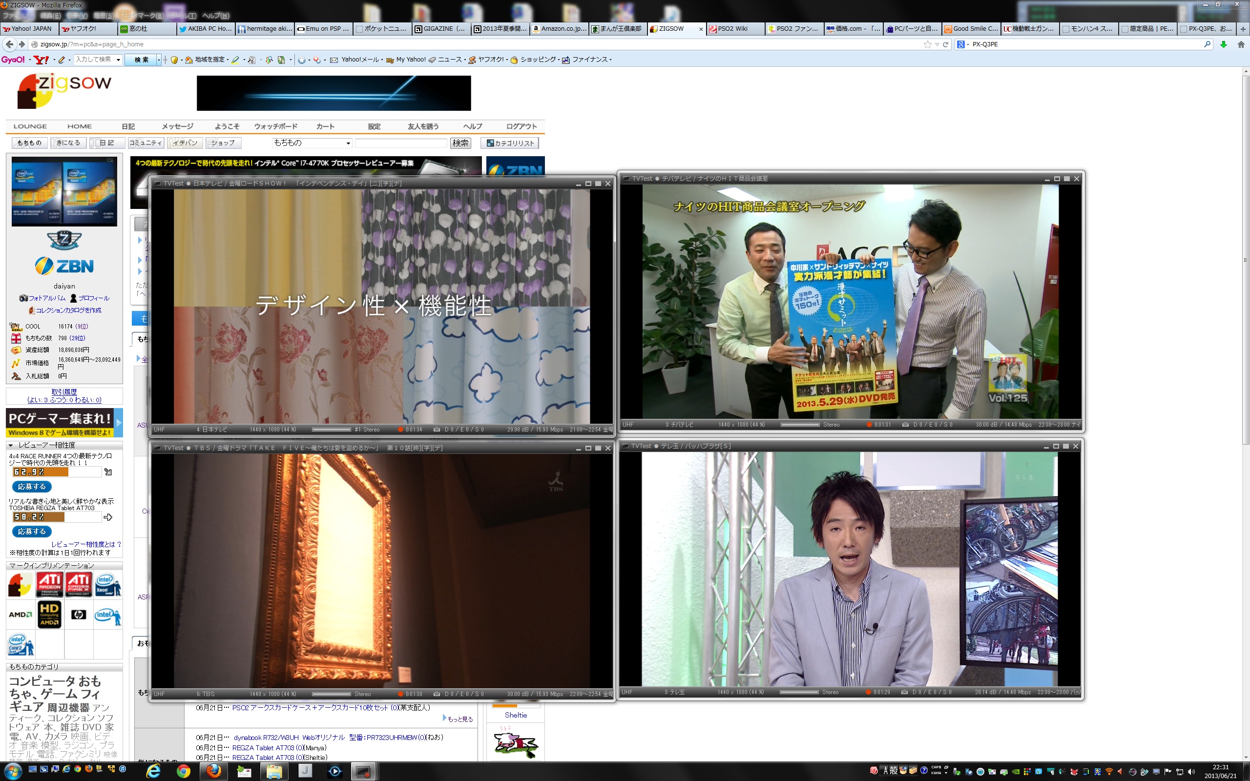 ちゃんと地デジが同時4ch表示出来ていますね。