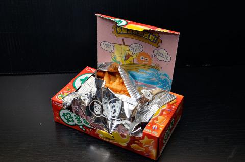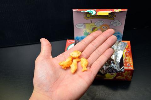 本物とちょっと違うのが、スナックに赤色の細かいフレーバーが振りかけられているという点。