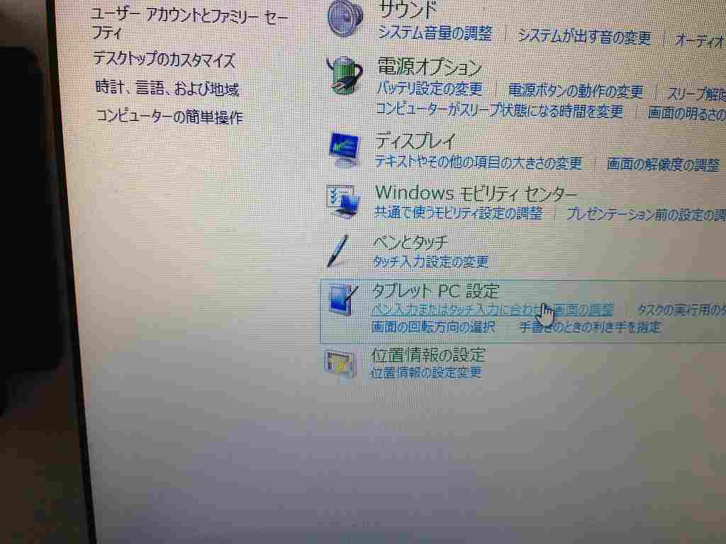 その中に「タブレットPC設定」→「ペン入力またはタッチ入力に合わせて画面の調整」