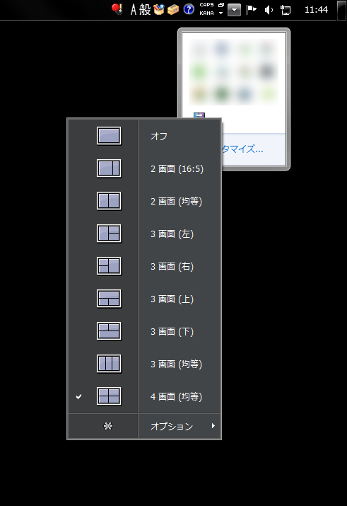 8種類の分割方法を選ぶことができる。