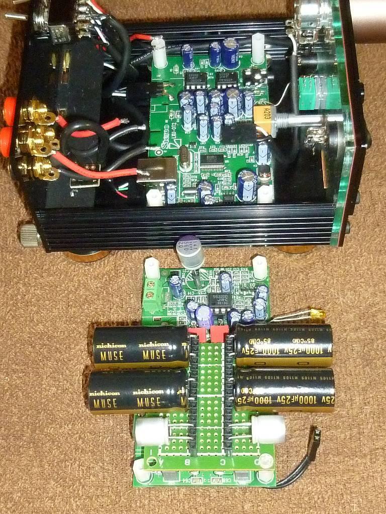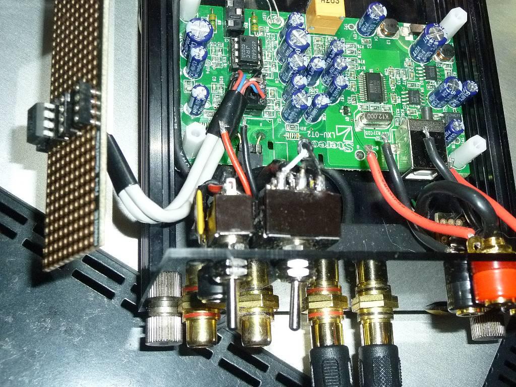 画像中:当初の計画通りOPAMPをケース開けずに交換できるよう