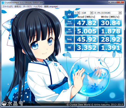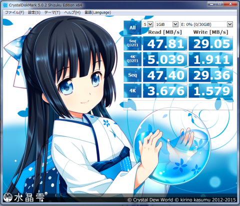 使用ソフトはCrystalDiskMark 5.0.2です。