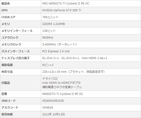 ちなみに、今回メインとなる「GEFORCE GTX 650Ti」は、