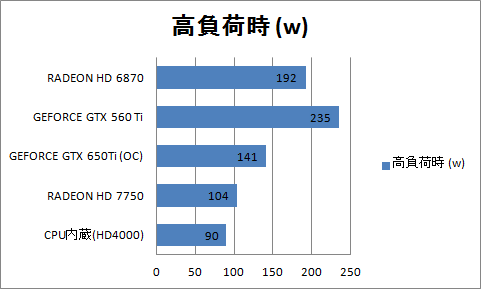 「GEFORCE GTX 650 Ti」と比べて100W近くの差が・・・