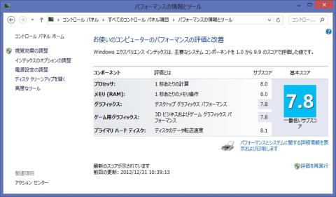 まずは簡単にウィンドウズのエクスペリエンスインデックスです。
