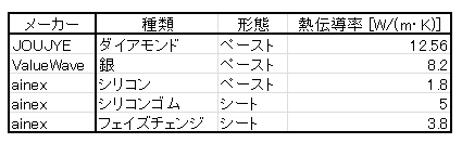 ダイアモンドグリス>フェイズチェンジシート>シリコングリス>シルバーグリス>シリコンシート