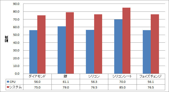 それでもダイアモンドグリスの結果が最も優れているのはそれだけ素材の熱伝導率の高さが寄与していると思われます。