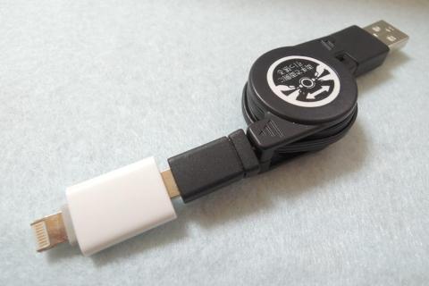 これを、100均で買った巻取り式のmicroUSBケーブル
