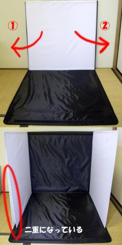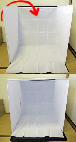 撮影ブースにするには、ベロクロ(マジックテープ)をはがし前後に広げます。