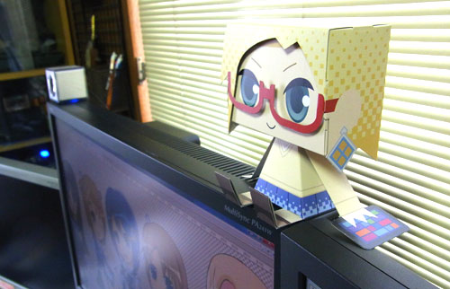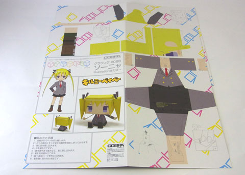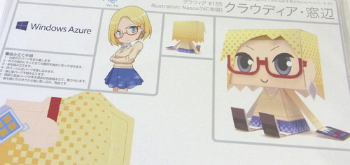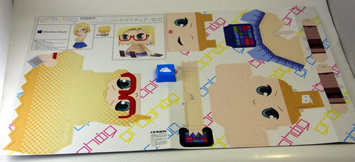 こちらのUSBメモリと同じくコミックマーケット83マイクロソフトブースで頒布されたJinsPCセットの1つ、クラウディア窓辺のグラフィグ(ペーパークラフト)。キネクトやOSセットにも封入されていた。