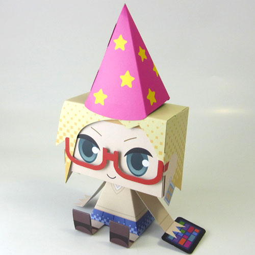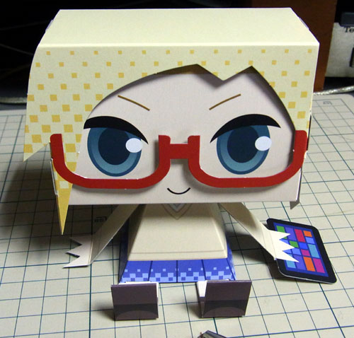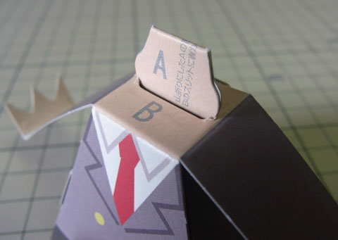 特にこのメガネパーツを兼ねた前髪部分の強度が弱いので、折り目をつけるときは慎重に。切り離しの時点でも結構ヒヤヒヤさせられた。 完成後も右前髪の先端を折らない様に気をつけよう。