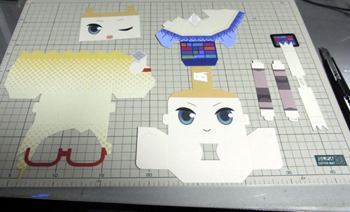 作り方は単純。切れ目が既にはいっているので台紙から取り外し、折り目をつけて組み合わせていくだけ。切れ目がはいっているとはいえ、とがった部分やカド、そして固定用のつなぎ目があるのでカッターがあったほうがきれいにできる。
