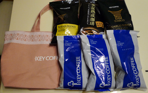 気になる中身は、キーコーヒーのロゴ入り布トートと、コーヒー豆6種類×200g