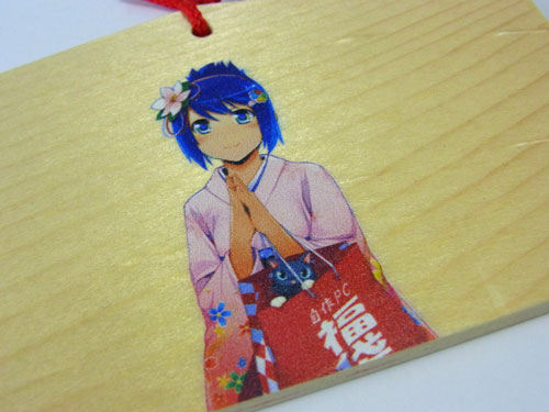 絵馬なので当然木でできている。プリントは結構綺麗で、解像度の低さ等も感じない。ただ同様に木にイラストがプリントされたアニメグッズが傷に弱かったので、扱いは慎重にしている。