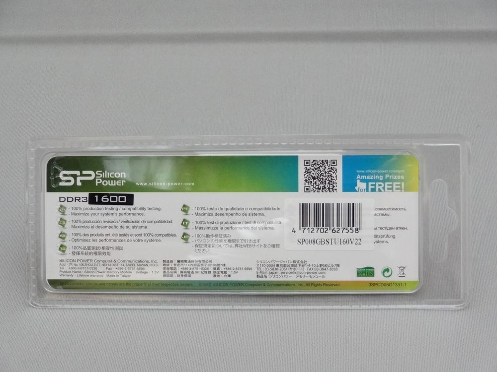 そんな中で、このメモリがDDR3-1600・4GB×2としては3000円を切っており購入に至りました。