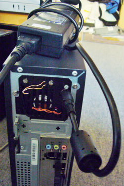 R10-D2ベアボーンの付属電源を外してAbeeの84WのACアダプターキットのDC/DC基盤を付ける事で、Mini-DTX規格マザーボードが取り付け出来ます。